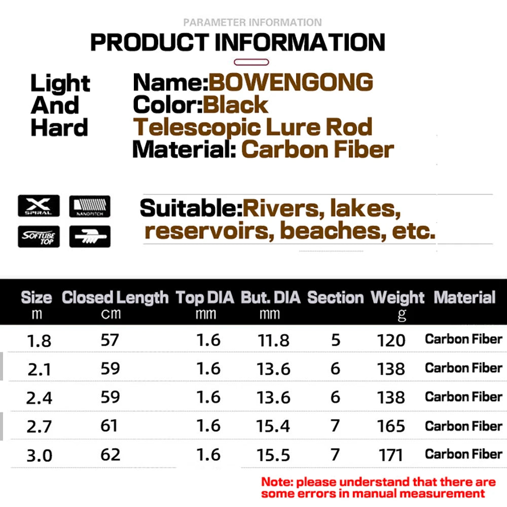1.8M 2.1M 2.4M 2.7M 3.0M Portable Telescopic Fishing Rod Carbon Fiber Spinning/Casting Fish Rod Tackle