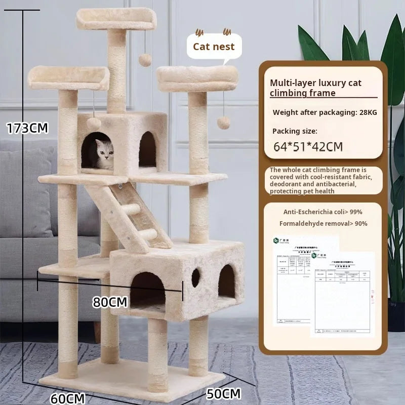 Cat Paradise! Multi-level Luxury Tan Cat Climbing Frame / Cat Paradise! Multi-level Luxury White Cat Climbing Frame (with Cat Bed) / HOOPET Multi-level Luxury White Cat Climbing Frame NKS (with Cat Bed)