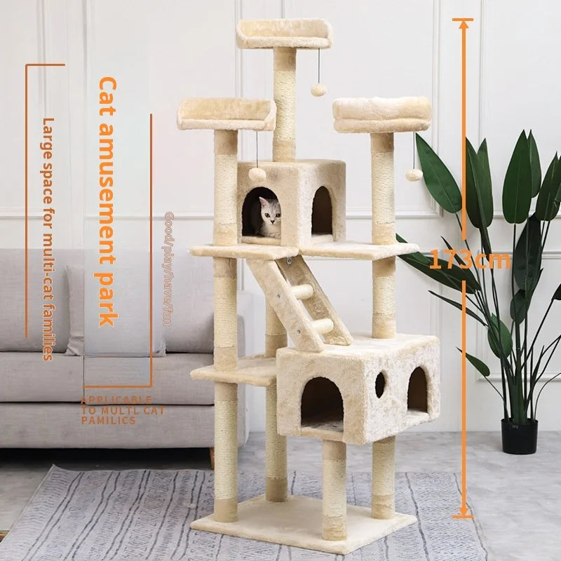 174cm Tower for Indoor Cats and Large Cat Tree With Sisal-Covered Scratching Posts Spacious Hammock Padded Perches and Condos