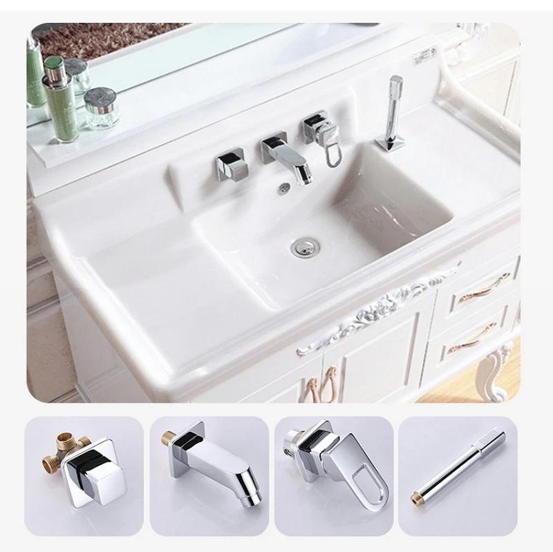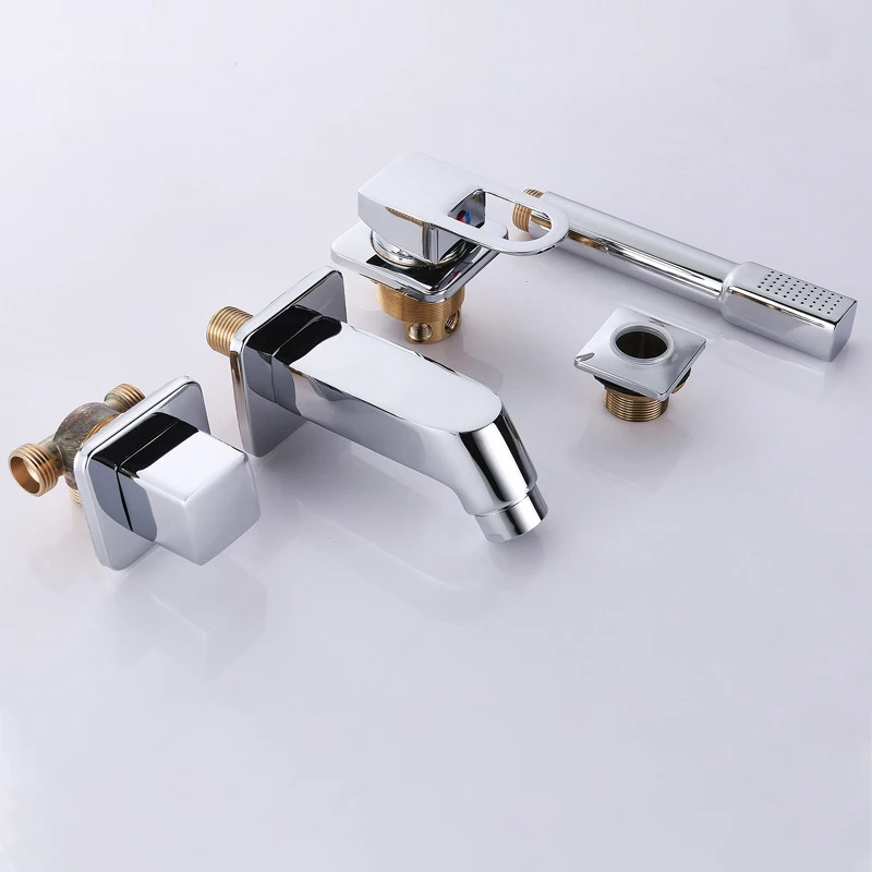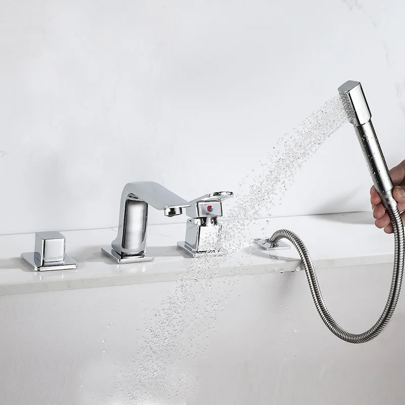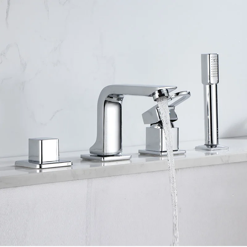 Deck/Wall Mounted Bathroom Bathtub Faucet Set with Handheld Shower Head 4 Holes Widespread Basin Tub Faucet Cold Hot Mixer Tap