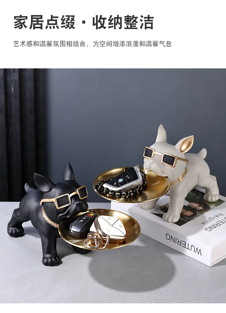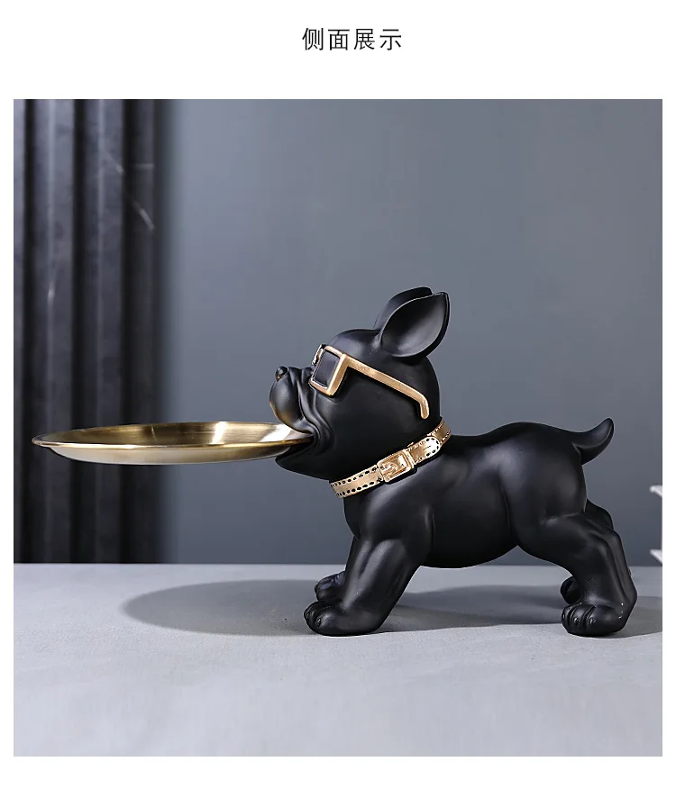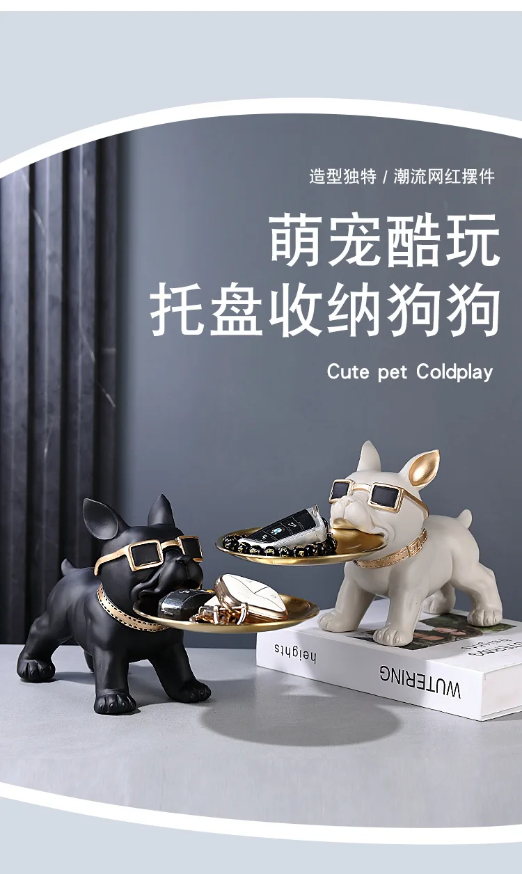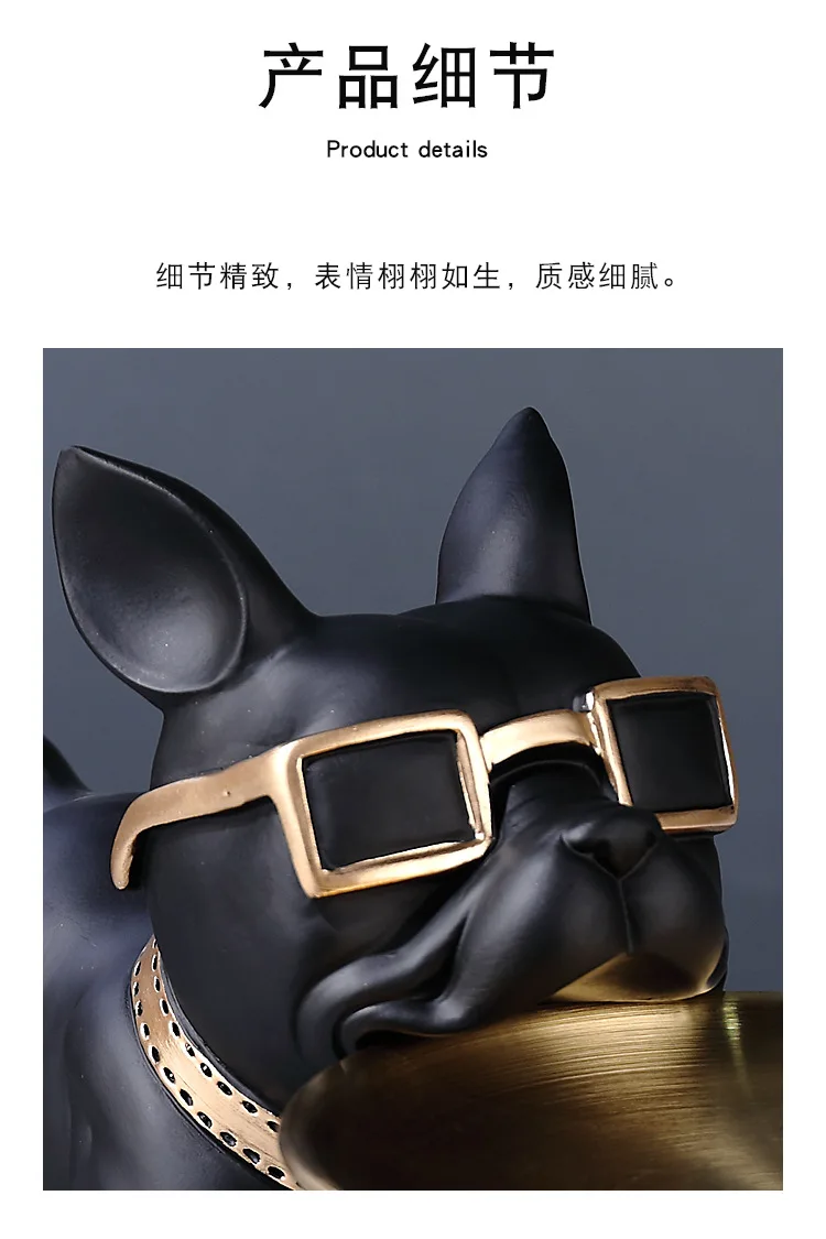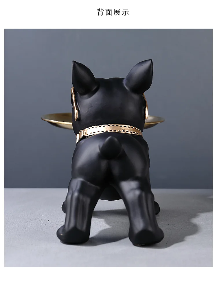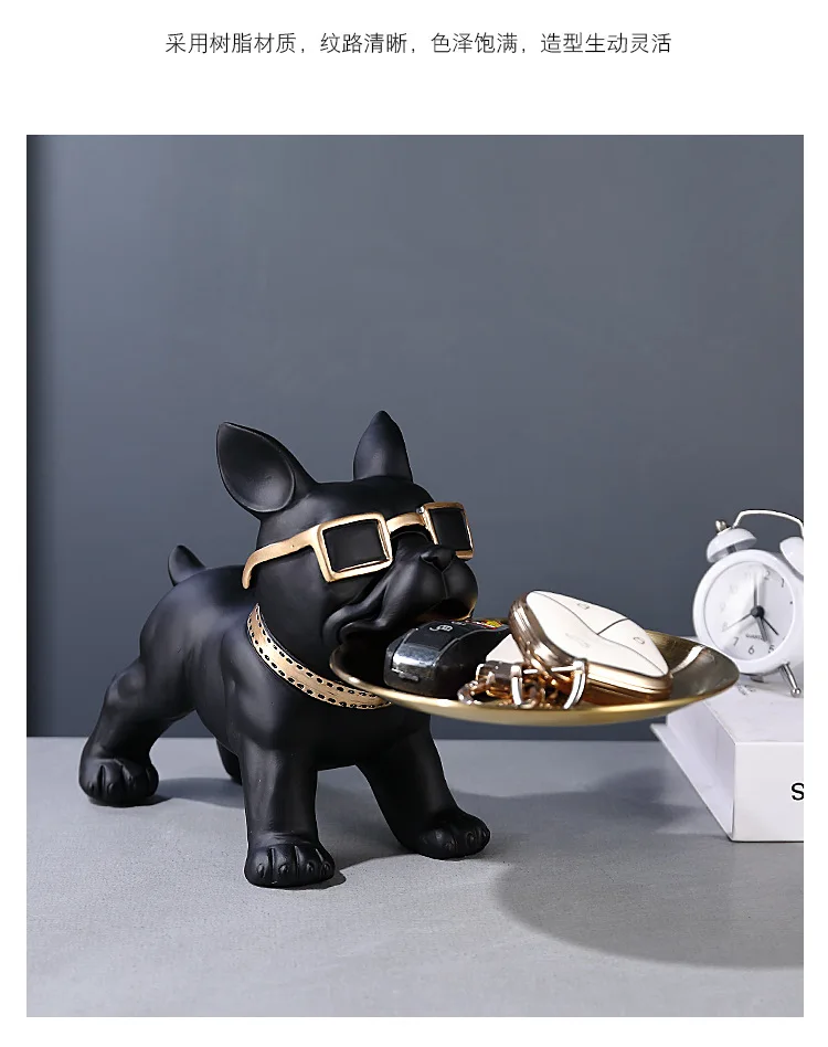 Dog Statue Cool French Bulldog Butler Décor with Tray Big Mouth Home Décor Storage Box Animal Resin Sculputre Figurine Art Gift