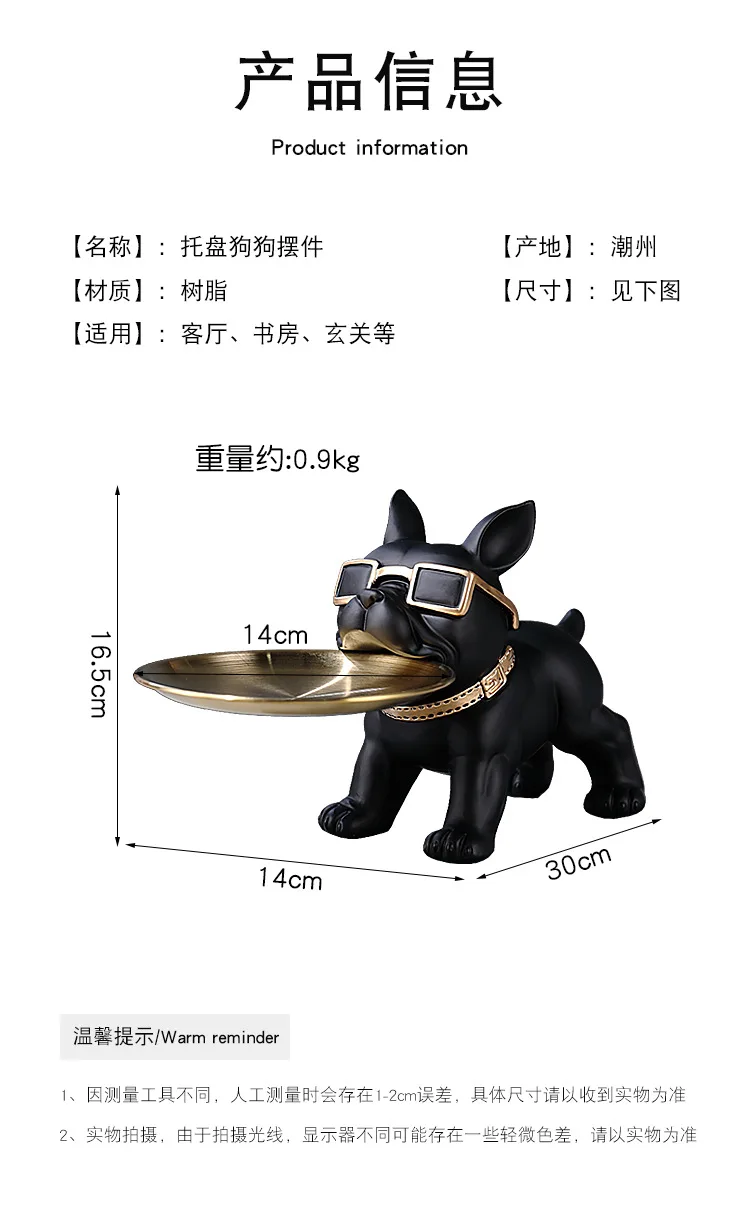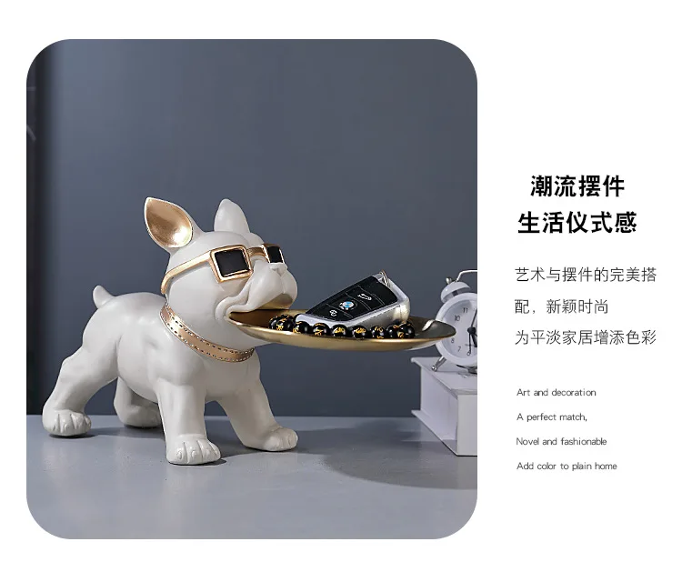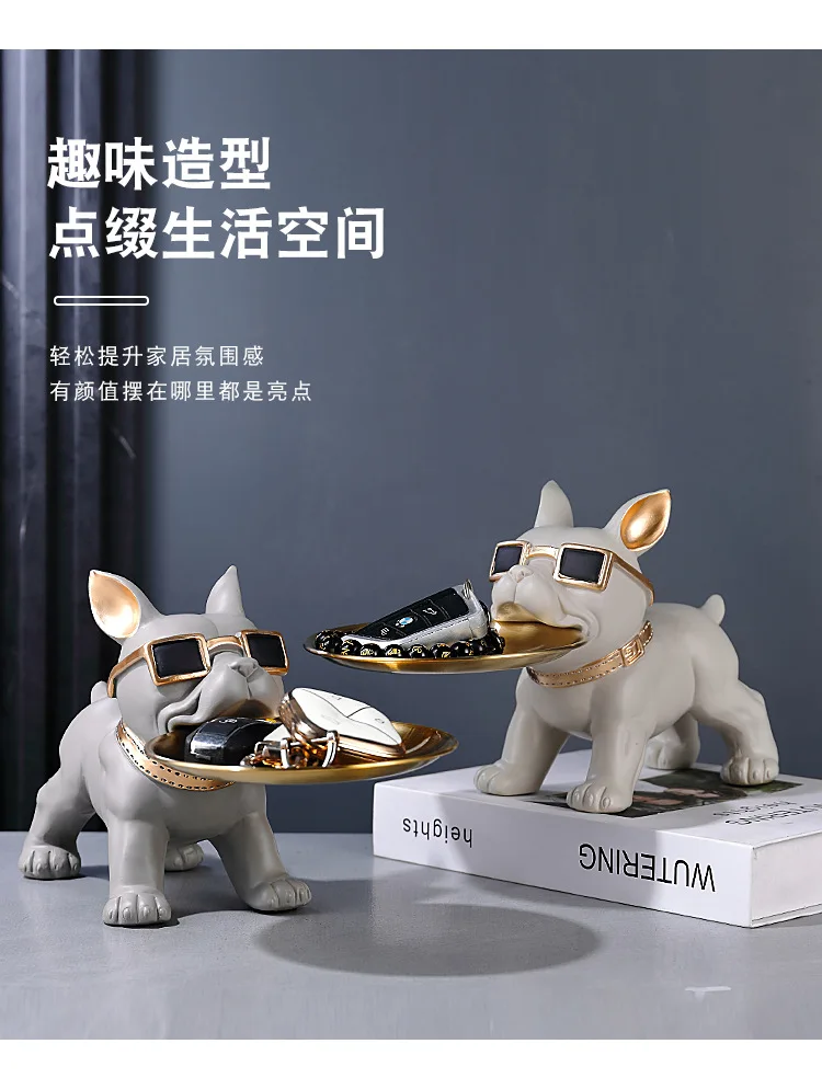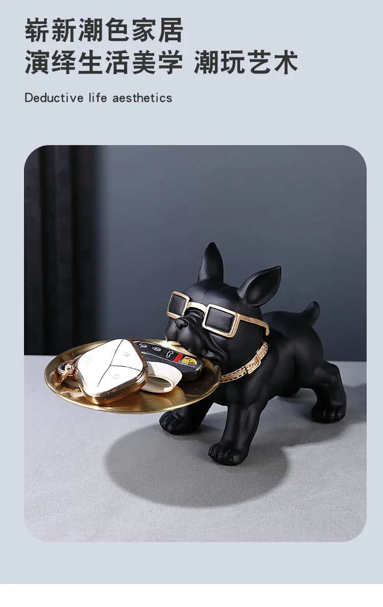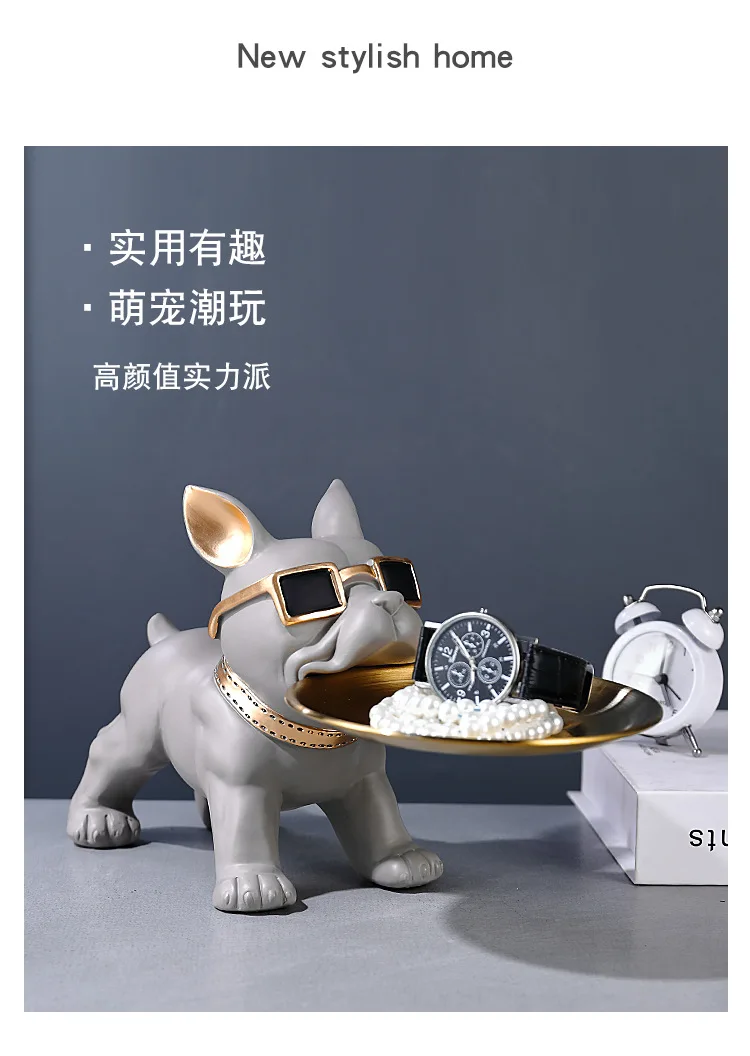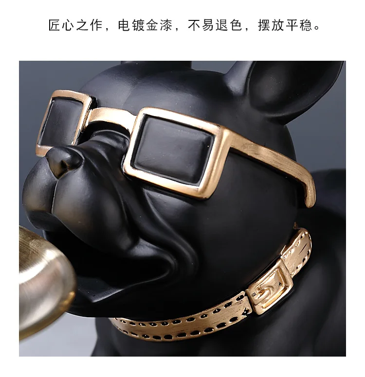 Dog Statue Cool French Bulldog Butler Décor with Tray Big Mouth Home Décor Storage Box Animal Resin Sculputre Figurine Art Gift