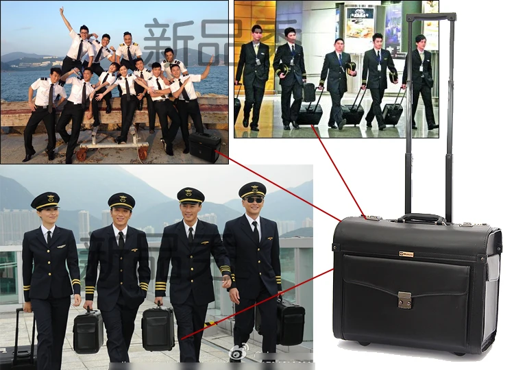 Fashion Retro PU pilot Rolling Luggage Cabin Airline stewardess Travel Bag on Wheels Business Trolley Suitcase handbag