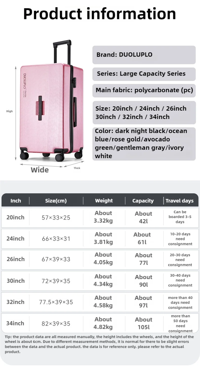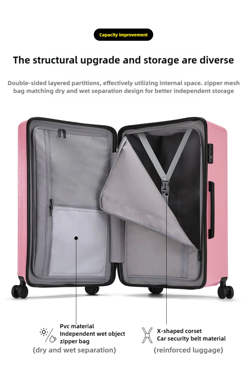 Large Capacity Travel Suitcase Rolling Carry On Luggage With Wheels Dry Wet Separation Bag Tsa Lock 20/24/26/30/32/34 Inch Case