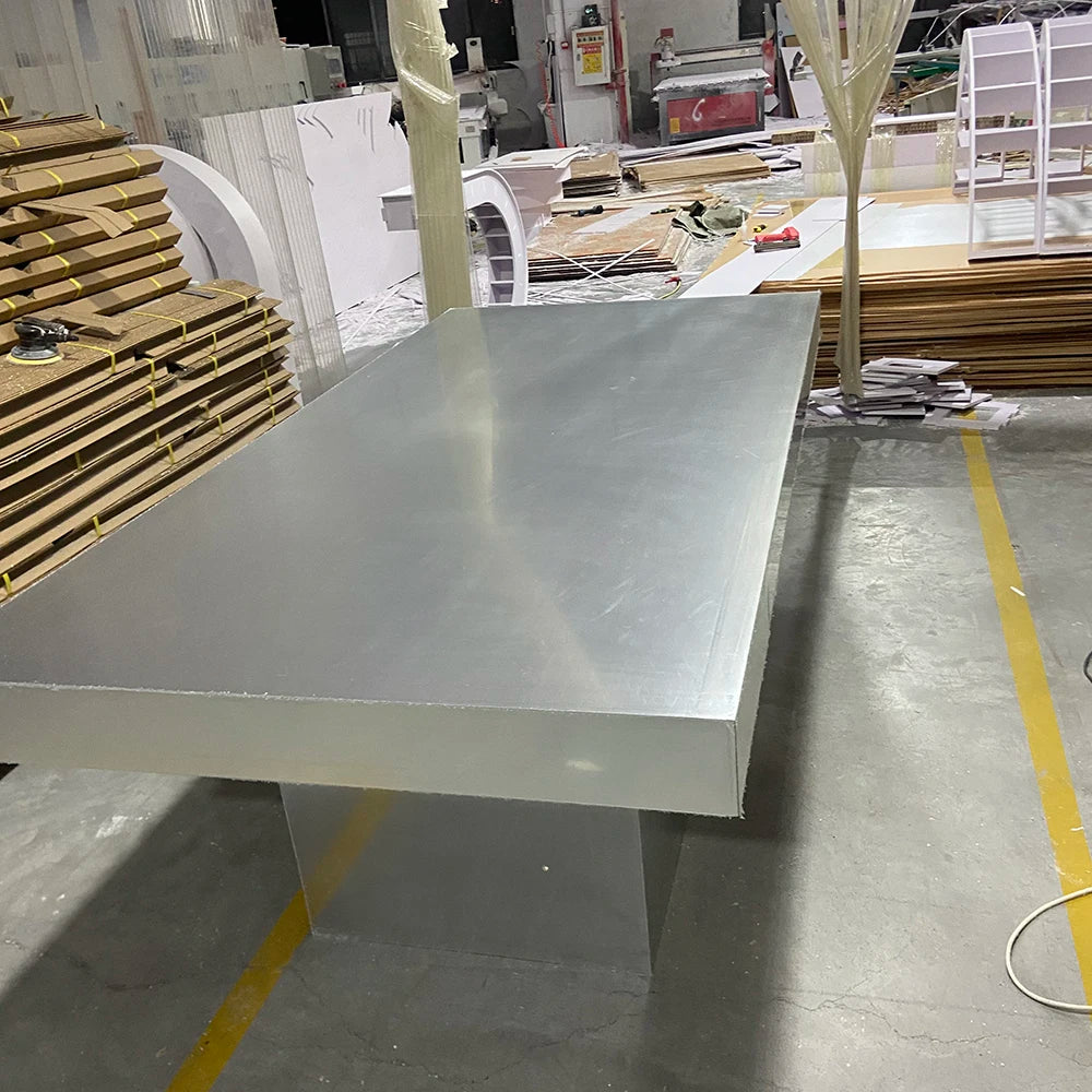Modern Latest Design Silver Mirrored Acrylic Wedding Dinning Table For Outdoor Wedding Event
