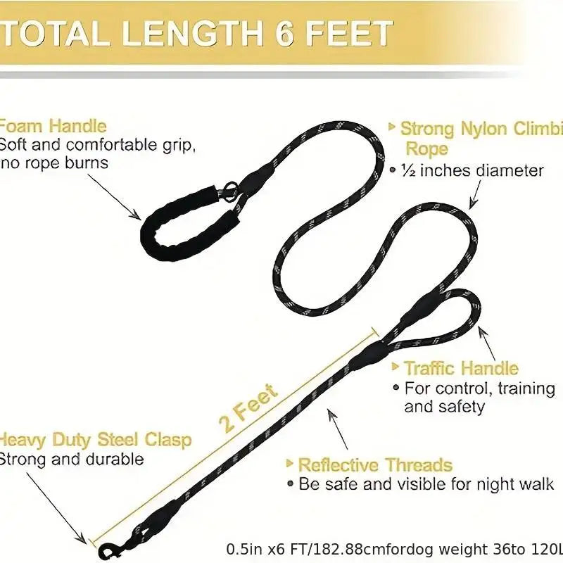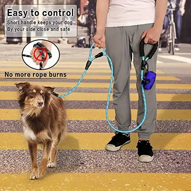 Pet Rope Dog Leash 6ft long,Traffic Padded Two Handle,Heavy Duty,Reflective Double Handles Lead for Control Safety Training,Leas